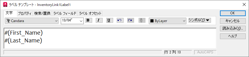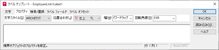 ラベルにスタイルを適用します。現在のスタイルは、システム変数 TEXTSTYLE に格納されます。既存のラベル テンプレートに新しいスタイルを適用すると、フォント、高さ、太字や斜体の属性に関する文字書式は変更されます。文字のスタック、下線、色の属性は、新しいスタイルを適用しても保持されます。文字を左右反転または上下反転して表示するスタイルは適用されません。SHX フォントに対して垂直に記入するスタイルが適用されている場合、[ラベル テンプレート]ダイアログ ボックスでは文字は水平に表示されます。