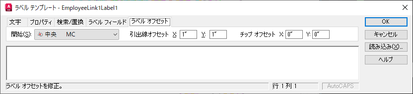 関連付けられている引出線オブジェクトについて、マルチ テキスト オブジェクトの X オフセットと Y オフセットを指定します。既定では、[引出線オフセット]オプションの[X]および[Y]ボックスは 1 に設定されています。これによって、ラベルの文字が X Y 平面で引出線オブジェクトの先端部から 1 単位分オフセットされます。[引出線オフセット]の設定は、アタッチされているラベルにのみ適用されます。