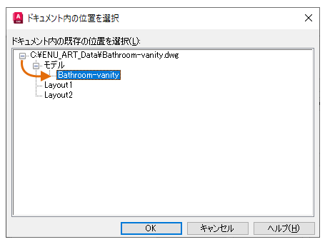 この図面ファイルをブロックとして挿入すると、指定したハイパーリンクが常に含まれます。