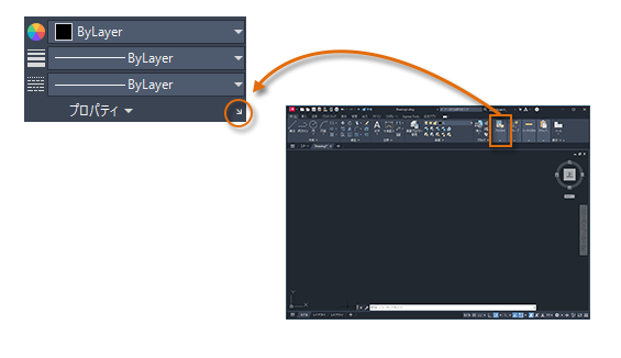 [プロパティ]パレットは図面の編集に必須のツールです。PROPERTIES[オブジェクト プロパティ管理]コマンドを使用する(コマンド ウィンドウに PR と入力する)、[Ctrl] + [1]を押す、または[ホーム]タブの[プロパティ]パネルにある小さな矢印をクリックすることで開くことができます。お好きな方法を使用してください。