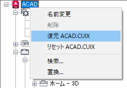 注: リセット時、プログラムのインストール場所の下にある UserDataCache フォルダ内の CUIx ファイルのみをリセットすることができます。
