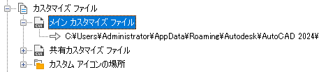 - [メイン カスタマイズ ファイル]または[共有カスタマイズ ファイル]の横のプラス記号(+)をクリックして展開します。