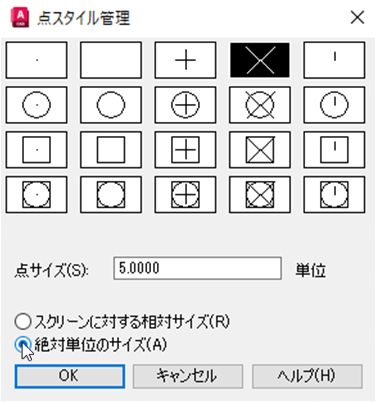 | PTYPE[点スタイル管理] | 点オブジェクトの表示スタイルとサイズを指定します。 |