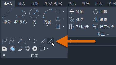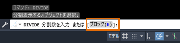 | DIVIDE[ディバイダ] | オブジェクトの長さまたは周長に沿って等間隔に、点オブジェクトまたはブロックを作成します。 |
