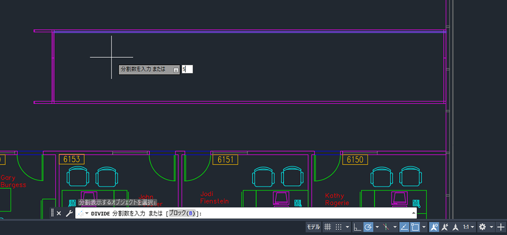 DIVIDE[ディバイダ]コマンドをもう一度使用しますが、今回は円を等分割します。ここでは、円を均等に 6 分割します。