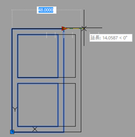 - オブジェクトを選択: 交差窓を使用して窓の右半分全体を指定してから、[Enter]を押してオブジェクトの選択を終了します。