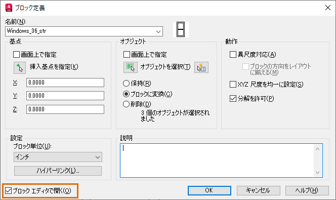 - ブロック名を入力します。ブロックの用途を示す名前を指定します。