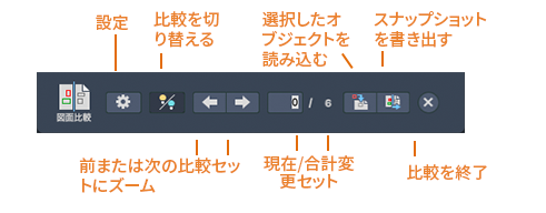 - 比較図面で行った変更は、その変更を比較図面に保存するまでは、比較結果に表示されません。