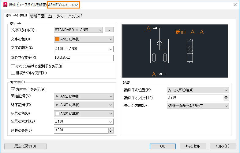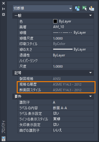 AutoCAD Mechanical の切断線記号が更新され、AWS Y14.3 - 2012 規格の履歴がサポートされるようになりました。AWS Y14.3 - 2012 をサポートするために、切断線記号のすべての側面が AWS Y14.3 - 2012 に対応するように修正されています。