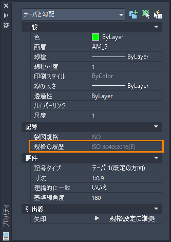 AutoCAD Mechanical は引き続き ISO 3040:2009(E)規格の履歴をサポートし、旧リリースで作成されたドキュメントを、テーパ記号と勾配記号の規格を更新せずに、開いたり、編集したり、保存することができます。ISO 3040:2016(E)および ISO 3040:2009(E)のサポートにより、必要な規格の履歴を使用して、新規および現況のデザインに注釈を付けることができます。