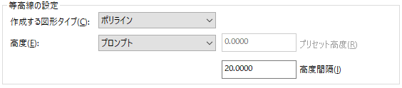 リボンの[ラスター ツール]タブ [ベクトル化ツール フォロー]タブをクリックします。[等高線の設定]領域で、[作成する図形タイプ]で[ポリライン]を選択して、[高度間隔]を 20 に設定します。[OK]をクリックします。 これらの設定により、ラスター等高線をトレースするとベクトル ポリラインに置き換えられ、元のラスター等高線が消去されます。 |