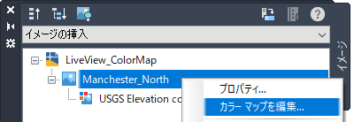 [イメージの挿入]表示で、LiveView_ColorMap ノードを展開してイメージ名を右クリックし、[カラー マップを編集]を選択します。 |