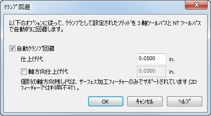加工初期設定 ダイアログ、フライス加工 ページの クランプ回避 をクリックして、クランプ回避 ダイアログを表示します。
