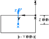 X 軸周りの割り出しの場合、X 座標は X 軸に沿って、Y 座標は垂直方向にフィーチャーを移動させます。