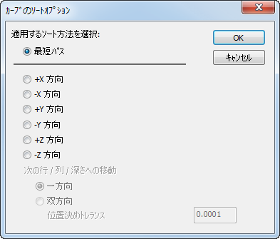 順序設定 ダイアログ、または、バウンダリー カーブを選択 ダイアログの手動設定 を選択して ソート をクリックし、 カーブのソート オプション ダイアログを表示します。