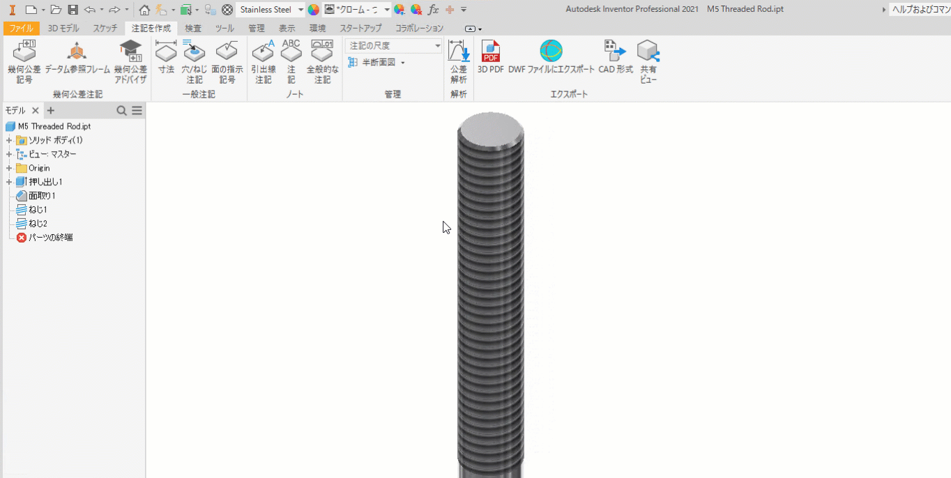 パーツ、アセンブリ、または図面ファイルに、外部ねじ注記または内部ねじ注記を作成します。