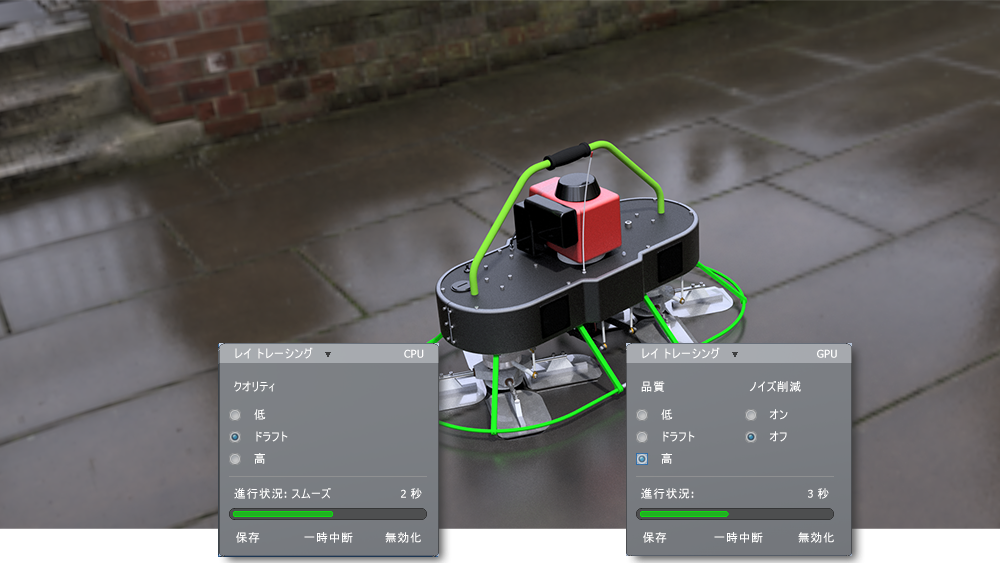 品質設定は両方のオプションで同じであり、GPUにはノイズを削減するための追加オプションが用意されています。