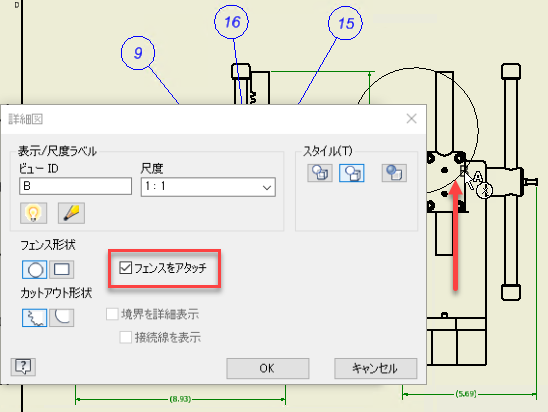 作成中に詳細図をポイントに固定するのが非常に容易になりました。[詳細図]ダイアログに新たに追加された[フェンスをアタッチ]ボックスをオンにして、詳細図を固定する先のポイントを選択します。