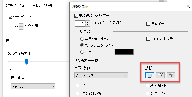 [ドキュメント]設定と[アプリケーション]オプションの両方で、[直交面でパース投影]を既定のビューとして設定できるようになりました。