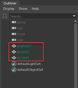 アウトライナ(Outliner)のライブ サーフェスの名前に同じカラーが適用されるため、長いオブジェクト リスト内でライブ サーフェスを簡単に見つけることができます。