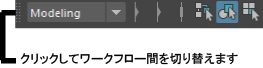 ステータス ライン(ツール バー)の選択モード アイコンの左側の領域が非表示の場合、バーをクリックして展開します。 ![]() ポップアップ メニュー アイコンを左マウス ボタンで押し、ワークフローを選択します。セレクション マスクが、そのワーク フローに関係するオブジェクトとコンポーネントに設定されます。 |