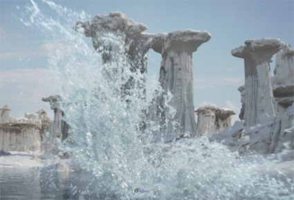 Bifrost は FLIP (Fluid Implicit Particle) ソルバを使用した高品質の液体および流体効果のシミュレーション システムです。エミッタから液体を生成し、重力で落下させ、コライダを操作し、フローを制御し水しぶきを作成します。フィールドを使用してジェットやその他のエフェクトを作成します。