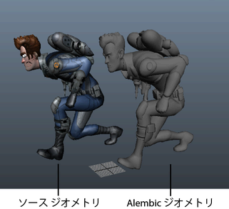 Maya の Alembic キャッシュを使用すると、制作パイプラインのさまざまな段階間でアセットを転送することができます。Alembic キャッシュ ファイルの内容は Maya ジオメトリとして評価され、ポリゴン、NURBS、サブディビジョン サーフェスなどの編集ツールを使用して変更できます。