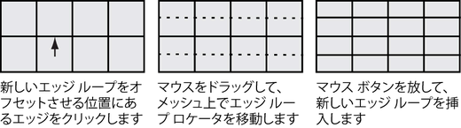 - 新しいエッジ ループをオフセットさせる位置にある、ポリゴン メッシュ上のエッジをクリックします。マウス ボタンは押したままにします。
