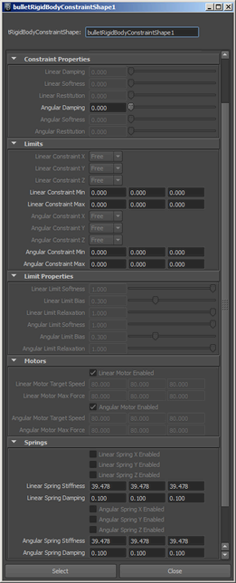 を選択します。 各プロパティの説明については、「Bullet のコンストレイント プロパティ」を参照してください。