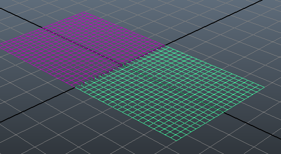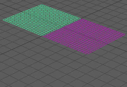 - 作成 > ポリゴン プリミティブ > プレーン(Create > Polygon Primitives > Plane)の順に選択することで、ポリゴン メッシュを 2 つ作成します。各プレーンを作成するときに、幅と高さを 5 に設定します。