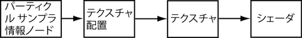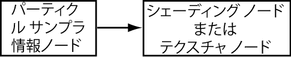 パーティクル サンプラ(Particle Sampler Info)ノードは、ソフトウェア レンダリングで使用できるように、particleShape アトリビュートをパーティクル シェーダ、テクスチャ、またはテクスチャ配置(Texture Placement)ノードのいずれかに提供します。
