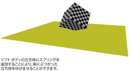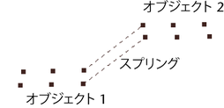 スプリングは、特定のオブジェクト コンポーネントに作成することができます。たとえば、異なるオブジェクト間でパーティクルのペアを選択して、そのパーティクル間にスプリングを作成することができます。