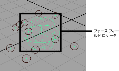 フォース フィールド(Force Field)コンストレイントを作成して、球状の境界を持つ放射状フィールドで、nParticle オブジェクトをコンストレイントのセンターから押しのけることができます。