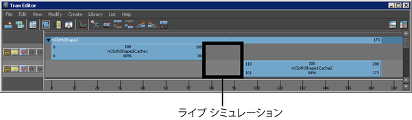 現在のオブジェクトのすべてのキャッシュがクリップとしてトラック ビューに表示されます。