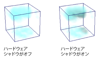 シミュレーション(ハードウェア描画)中に流体をセルフ シャドウ(流体が自分自身にシャドウを投影する)する場合に、このオプションをオンにします。このエフェクトを表示するにはシェーディング > ハードウェア テクスチャリング(Shading > Hardware Texturing)をオンに設定する必要があります。