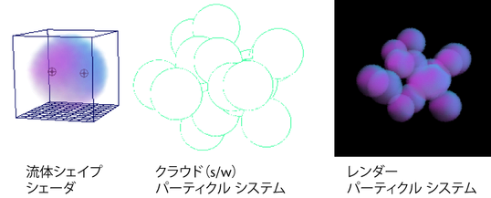パーティクル シェーダとしての流体シェイプ シェーダ