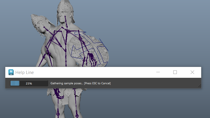 さらに、デフォメーション プロセスがヘルプ ラインに表示されるようになったため、デフォメーションの進行状況(サンプル ポーズのギャザリング、インフルエンスの決定、またはウェイトの計算)を追跡することができます。[Esc]キーを押すと、任意の段階で処理をキャンセルできます。