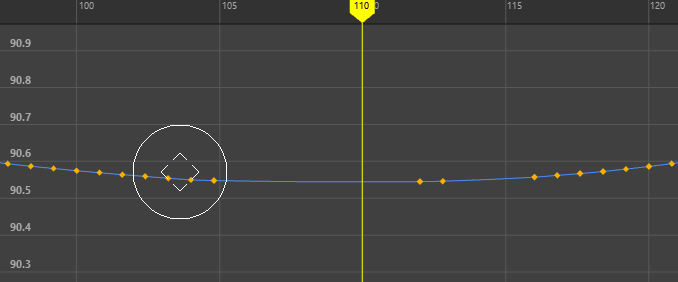 ![]() 既定のスカルプト カーソル(値(Value)軸のみ) ![]() 時間に影響(Affects Time)オプションがアクティブなスカルプト カーソル |