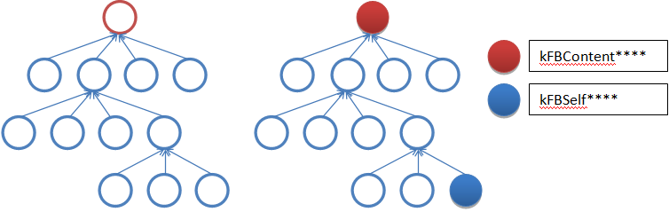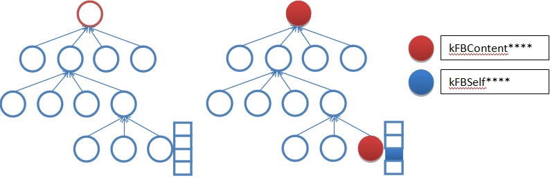The red circle represents the reference object and the blue circle represents the referenced items. The result after the dirty flags are set is shown on the right.