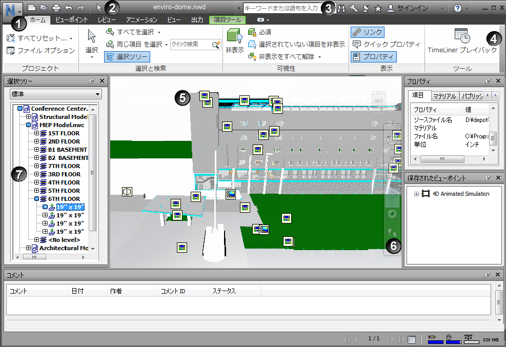| 2.クイック アクセスツールバー | 6.ナビゲーション ツール |