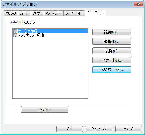 [ファイル オプション]ダイアログ ボックスの[DataTools]タブにある[DataTools のリンク]領域でエクスポートするリンクを選択し、[エクスポート]ボタンをクリックします。