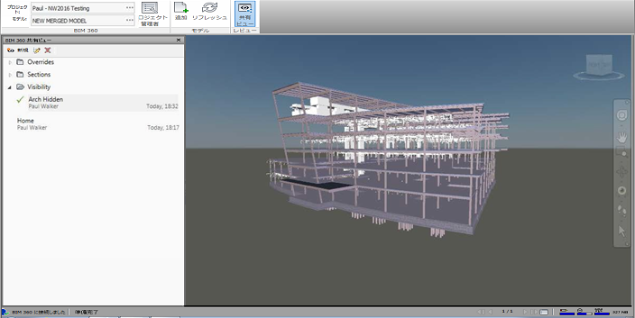 BIM 360 の合成モデル内に作成した他の Navisworks データは BIM 360 に保存されますが、このデータにアクセスできるのは BIM 360 クライアントとして Navisworks も使用しているユーザのみです。同様に、それ以外の BIM 360 データを表示できるのは、BIM 360 データをサポートしている BIM 360 クライアントに限られます(Navisworks は含まれません)。