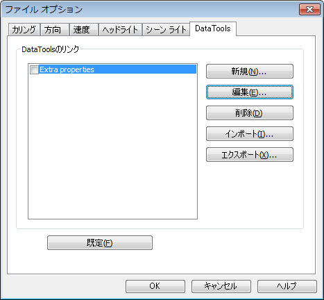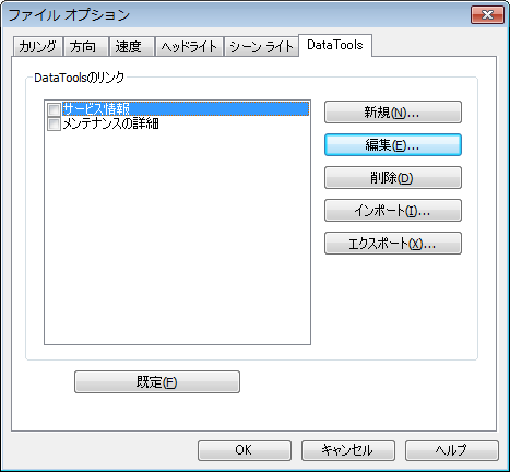[ファイル オプション]ダイアログ ボックスの[DataTools]タブの[DataTools のリンク]領域で設定するリンクを選択し、[編集]ボタンをクリックします。
