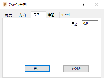 指定された 長さ 以上のセグメントがオリジナルツールパスに含まれている場合、分割操作に作成される一部のツールパスが、長さ 値を超過する場合があります。この場合、警告メッセージが表示されます。