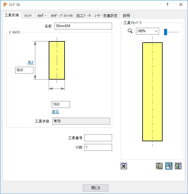 エンドミルの場合、次図のようなダイアログが表示されます。