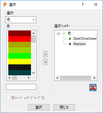 DarkOliveGreen と Maroon 以外のコンポーネントが選択されます。