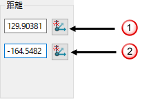 をクリックすると、距離に関する項目が、切り取り平面から新規作業平面までの距離を反映するように更新されます。