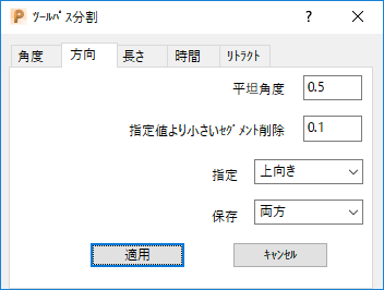 以下のように、[ツールパス分割] > [方向] ダイアログを設定します。