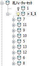 エクスプローラーで個別の孔フィーチャーの順序を表示、または、方向表示 を選択し、孔フィーチャーのソートの効果を確認することができます。
