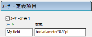 ステータスバー が新規項目で更新されます。ユーザー定義項目にマウスオーバーし、工具先端値の作成に使用する数式を確認します。
